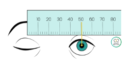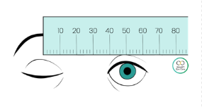 They would then ask you to close your right eye and align the zero mark of the ruler with the center of your left pupil. Then, without moving the ruler, close your left eye and open your right eye. Note the measurement to the center of your right pupil. This number is your PD. For most adults, PD ranges between 54-74 mm.
